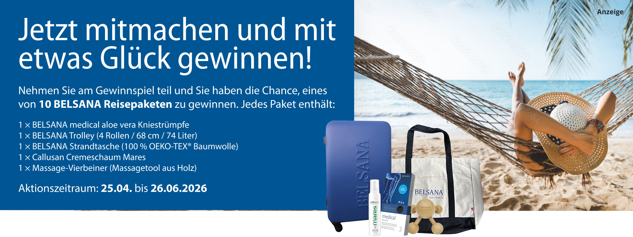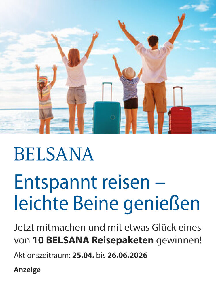 Veranstalter ist Alliance Healthcare Deutschland GmbH, Franklinstraße 46-48, 60486 Frankfurt. Die Teilnahme ist online unter www.apotheke.com und per Post möglich. So einfach geht die Teilnahme am Gewinnspiel – online Eingabemaske ausfüllen und teilnehmen oder Postkarte senden an: Alliance Healthcare Deutschland GmbH, Despina Kalaitzidou, Stichwort „Belsana“, Pragstraße 154, 70376 Stuttgart.